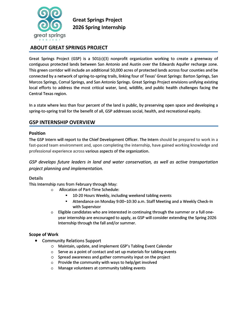 Great Springs Project Physical: 409 W 14th St Austin TX 78701 Mailing: PO Box 12331 Austin TX 78711
